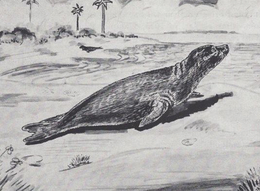 Drawn Caribbean monk seal in the 1800s