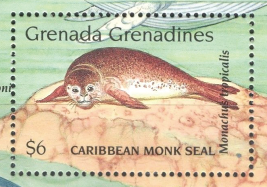 Caribbean monk seal on a stamp of Grenada