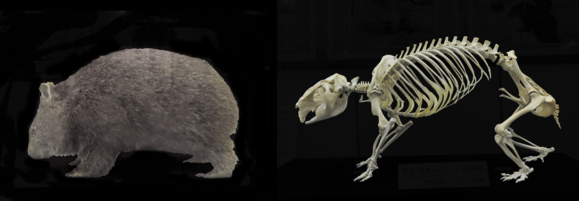 Skeletal and stuffed specimen of wombat@ Ikeda city Satsukiyama Zoo(Click to view larger image).