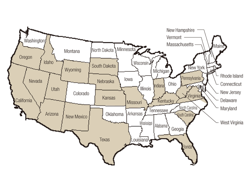 ダイアウルフの分布を示す北米の地図(グレー部分では発見済) (画像をクリックで拡大表示)