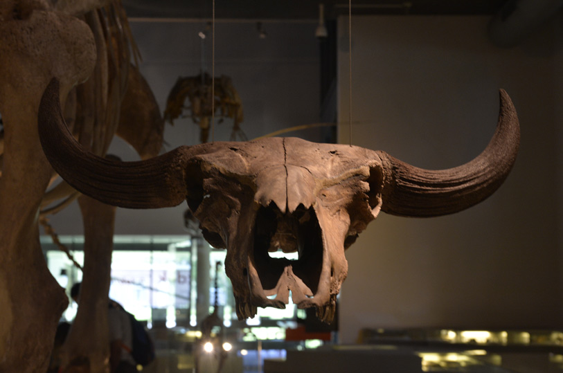 ジャイアントバイソンの頭骨標本(画像をクリックで拡大表示)