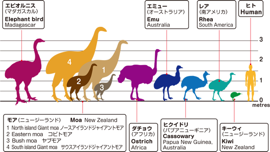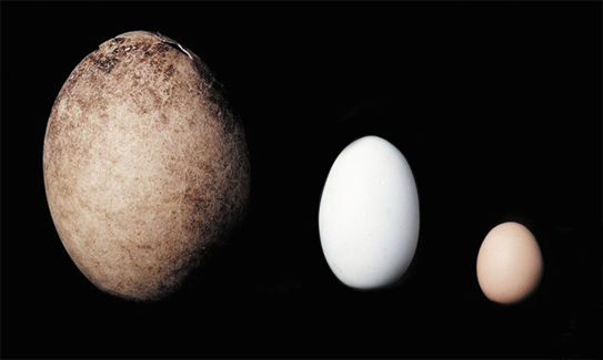Comparison of the egg size (From left, Giant moa, Ostrich, chicken)