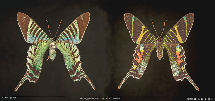 マダガスカルニシキオオツバメガ(裏表) (画像をクリックで拡大表示)