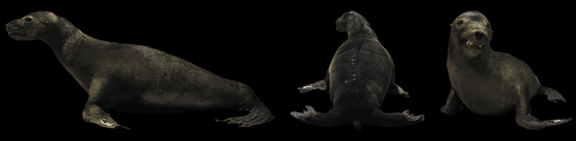 ニホンアシカのオスは濃い灰褐色で、体長は2.3 - 2.5 m、体重は450 - 560㎏に達した。高齢になると毛皮はより黒っぽくなった。オスに比べメスはずっと小柄で体は1.40 ~ 1.64 m程。色も淡色であった。かつてニホンアシカは動物園でも人気のどうぶつであり、飼育展示、ときには繁殖もされていた記録があるが飼育下でも絶滅してしまった。大阪の天王寺動物園や九州の熊本動植物園などには、今も貴重な剥製が所蔵されている。また、オランダのライデンにある自然史博物館には、シーボルトが長崎に近い出島に滞在していた時に母国へ送ったとされるニホンアシカの剥製が所蔵されている。現在では世界的に剥製ですらほとんど目にすることのないニホンアシカを、当園で紹介できることをとても嬉しく思う。
