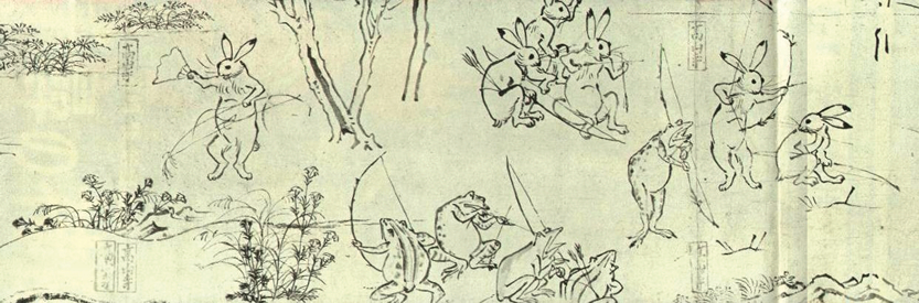 『鳥獣戯画』から兎と蛙の賭弓競技 (画像をクリックで拡大表示)