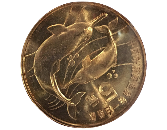 中国の記念金貨にデザインされたヨウスコウカワイルカ